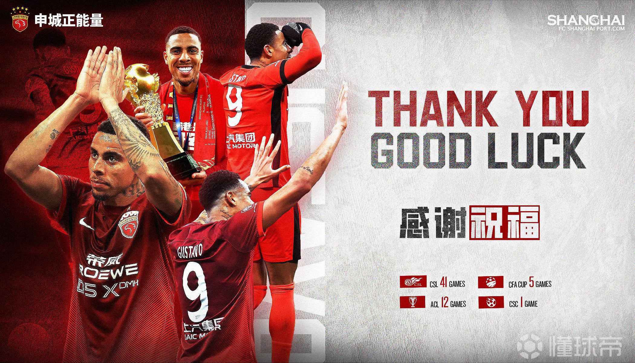 【感谢 祝好】球员古斯塔沃·恩里克正式离队经友好协商,巴西球员古斯塔沃·恩里克正式离队,加盟河南足球俱乐部。俱乐部充分尊重、支持球员对其职业生涯的全新规划,同时对球员表示衷心的感谢与祝福。自2024年2月加盟上海海港以来,古斯塔沃共代表俱乐部出战各项赛事59场,贡献31粒进球和11次助攻。他既是前场可靠的支点,凭借出色的制空能力与护球技术帮助队友创造机会,也是一把锋利的尖刀,以敏锐的门前嗅觉和精湛的射术为球队攻城拔寨。加盟后的首个赛季,古斯塔沃就在中超联赛攻入20球,位列射手榜第三位。效力期间,古斯塔沃随队夺得2次中超联赛冠军和1次足协杯冠军。无论是进攻端的冲锋陷阵,还是防守端的积极回援,他在场上始终全力以赴,其饱满的热情与高度的职业素养,赢得了海港大家庭的喜爱与认可。场下,他以开朗的性格感染着全队,为更衣室增添了许多活力与快乐;面对球迷时,他总以真诚的笑容回应支持,让球队与球迷朋友们之间多了一份温暖的联结。感谢古斯塔沃为海港倾注的汗水与热忱,也感谢他带给我们的诸多精彩瞬间与动人回忆。俱乐部衷心祝愿他在未来的职业生涯与人生道路上一切顺利,继续闪耀属于自己的光芒。