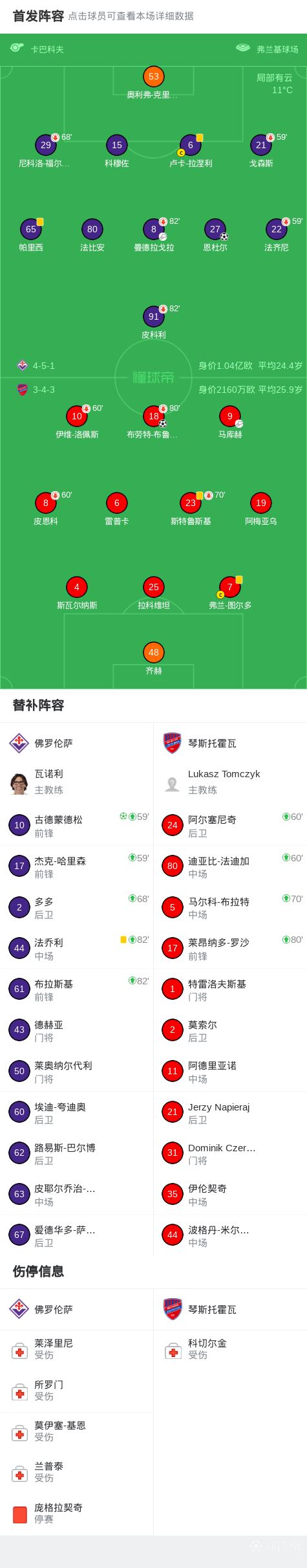 佛罗伦萨2-1琴斯托霍瓦,恩杜尔世界波,古德蒙德松点射绝杀