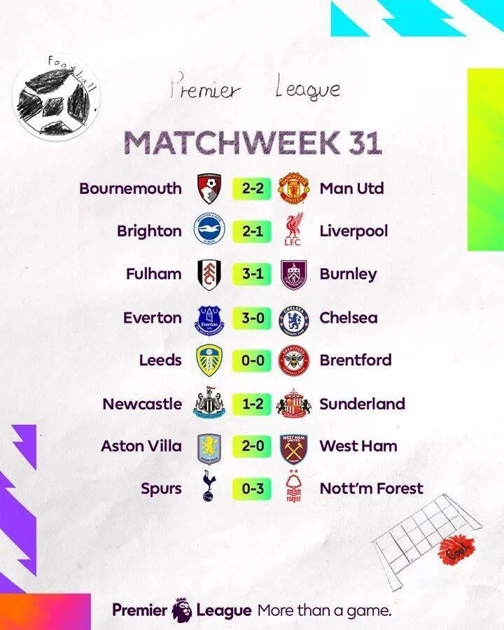 英超第31轮综述:热刺0比3惨败、13轮不胜,红蓝两军双双折戟