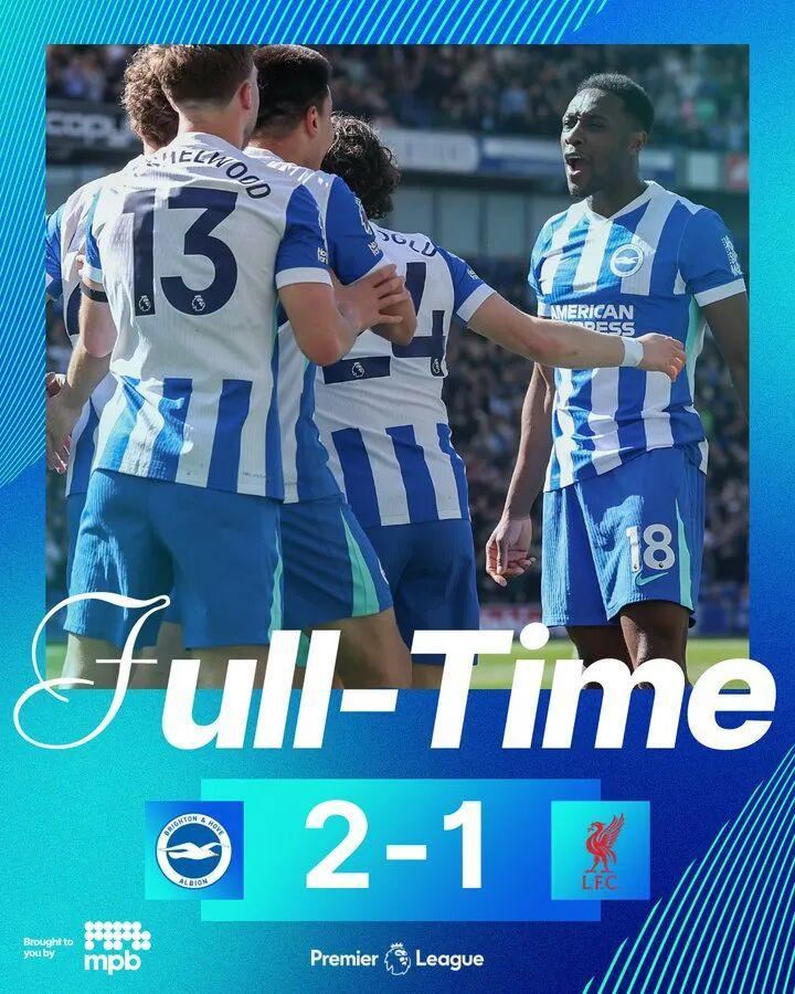 布莱顿2比1利物浦