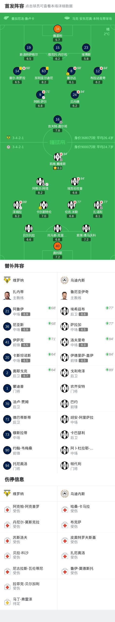 乌迪内斯3-1维罗纳,凯南-戴维斯破门,扎诺利建功